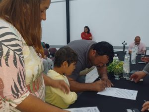 Vecinos de San José de Feliciano firmaron los títulos de las viviendas construidas por el Instituto,en un acto con la presencia del presidente IAPV,escribana mayor del Gobierno ER,la diputada Elena Romero y el presidente municipal Arevalo